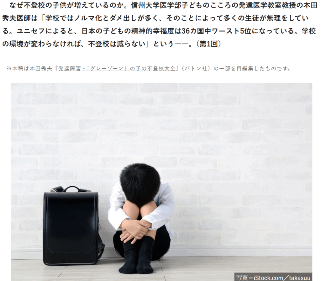 プレジデントオンラインにて、書籍『発達障害・「グレーゾーン」の子の不登校大全』の関連記事として、