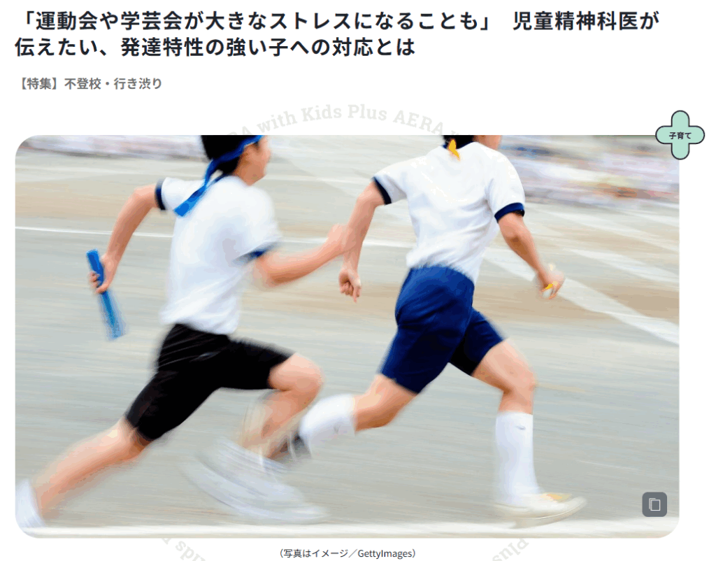 AERA with Kids+『「運動会や学芸会が大きなストレスになることも」 児童精神科医が伝えたい、発達特性の強い子への対応とは』