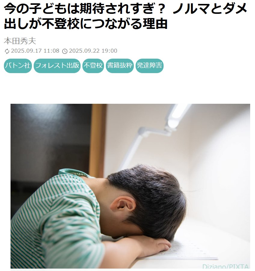 詳細はこちら➡今の子どもは期待されすぎ? ノルマとダメ出しが不登校につながる理由